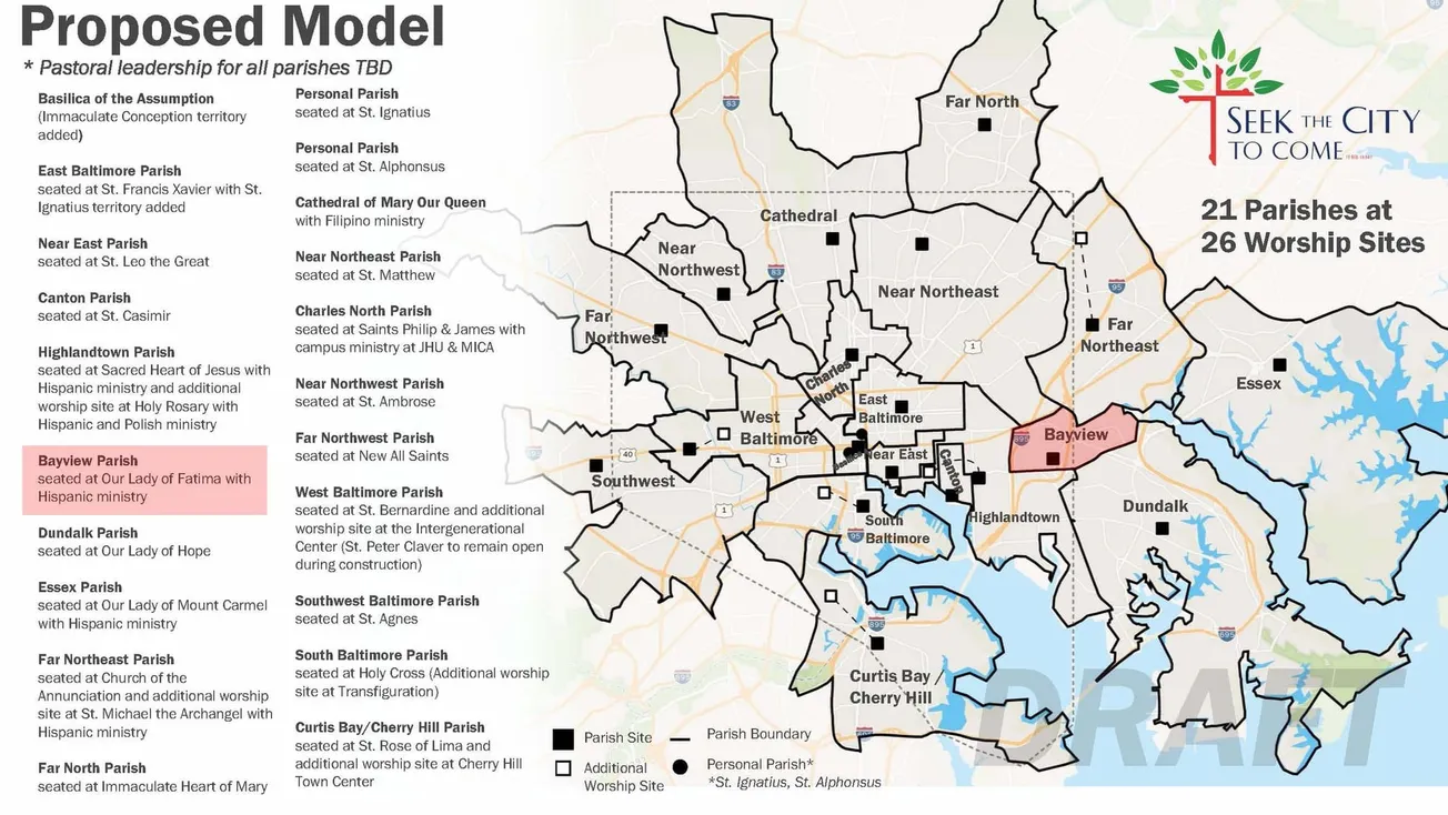 “After nearly two years of listening, study, prayer, analysis and community weigh-in, the Seek the City to Come initiative has entered into the public comment phase. A recommended proposal was developed for the Catholic Church in Baltimore City to include investment and ministries, the realignment of parish communities designed to offer a strong sense of belonging for all and the merging of parish campuses,” the chancery posted on its website.