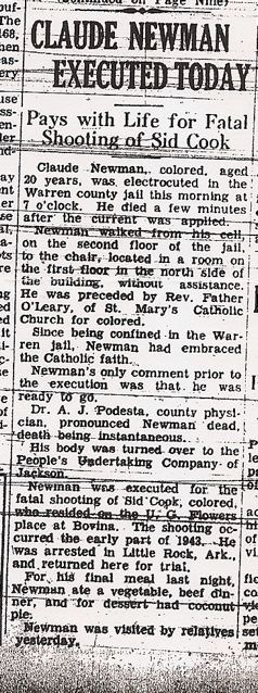 The next month, Newman was arrested and extradited to Vicksburg, Mississippi, just west of the capital of Jackson and the site of various lynchings in previous decades. Unsurprisingly, his alleged confession to the Cook killing was said to have been coerced, but he was quickly convicted and sentenced to die by the electric chair—then a new method of execution in Mississippi.