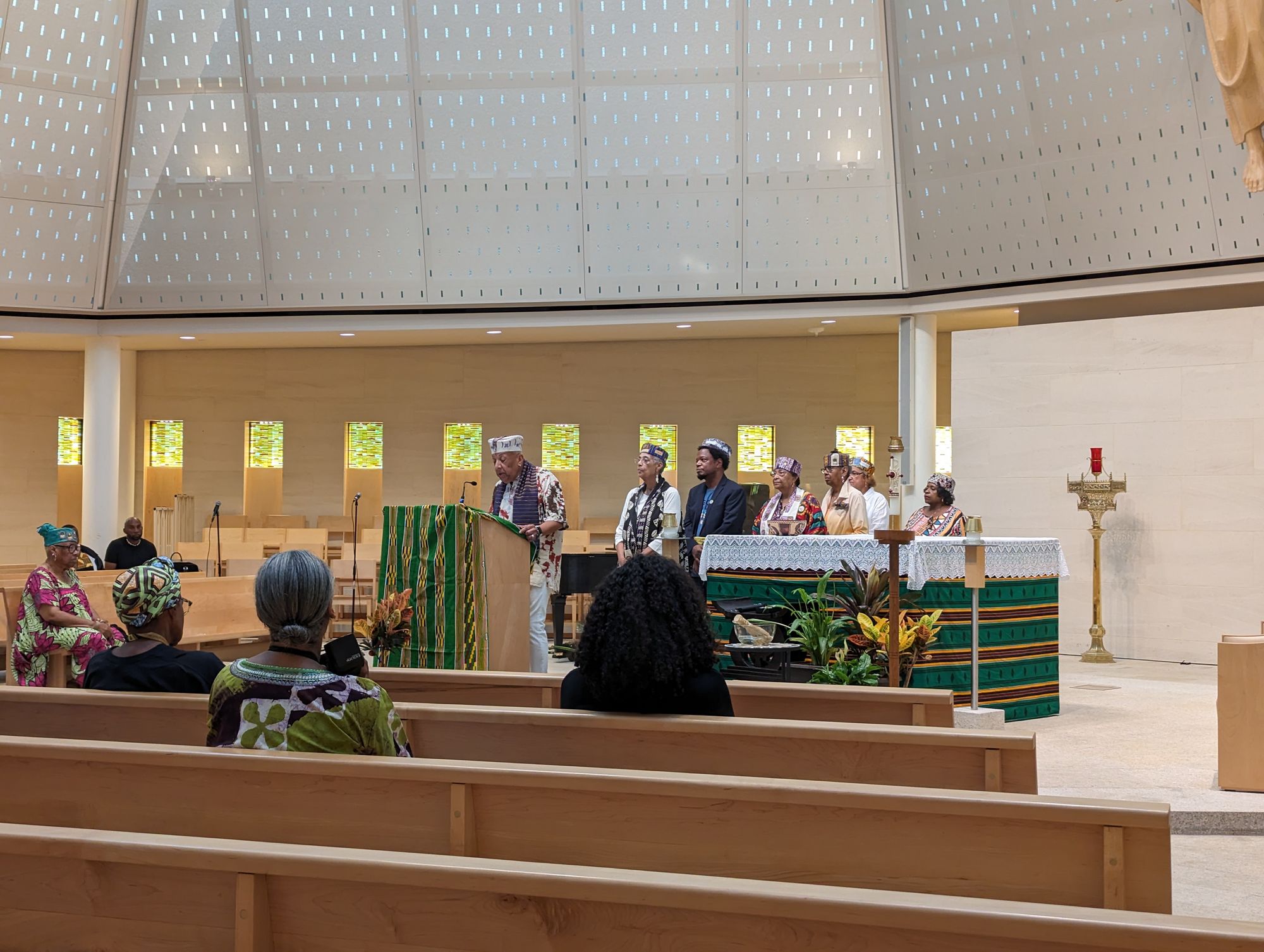 The elders led the final day’s morning gathering, featuring each of them donned in Afrocentric garb and custom-made “crowns” (kente-decorated kufis) to present the stories of the first six African-American Catholics on the path to sainthood. During the liturgy, the senior group also received certificates for their participation in the retreat.