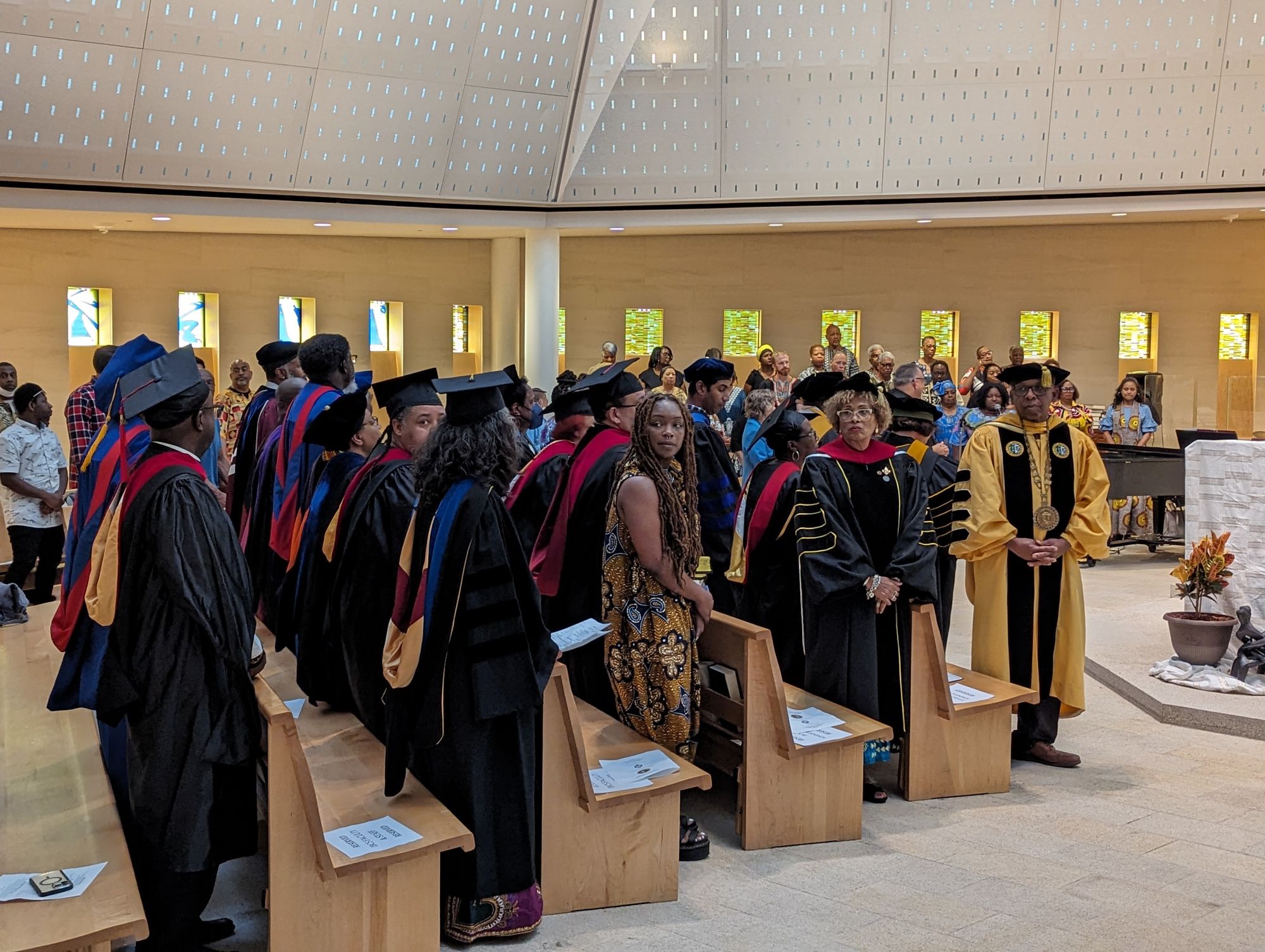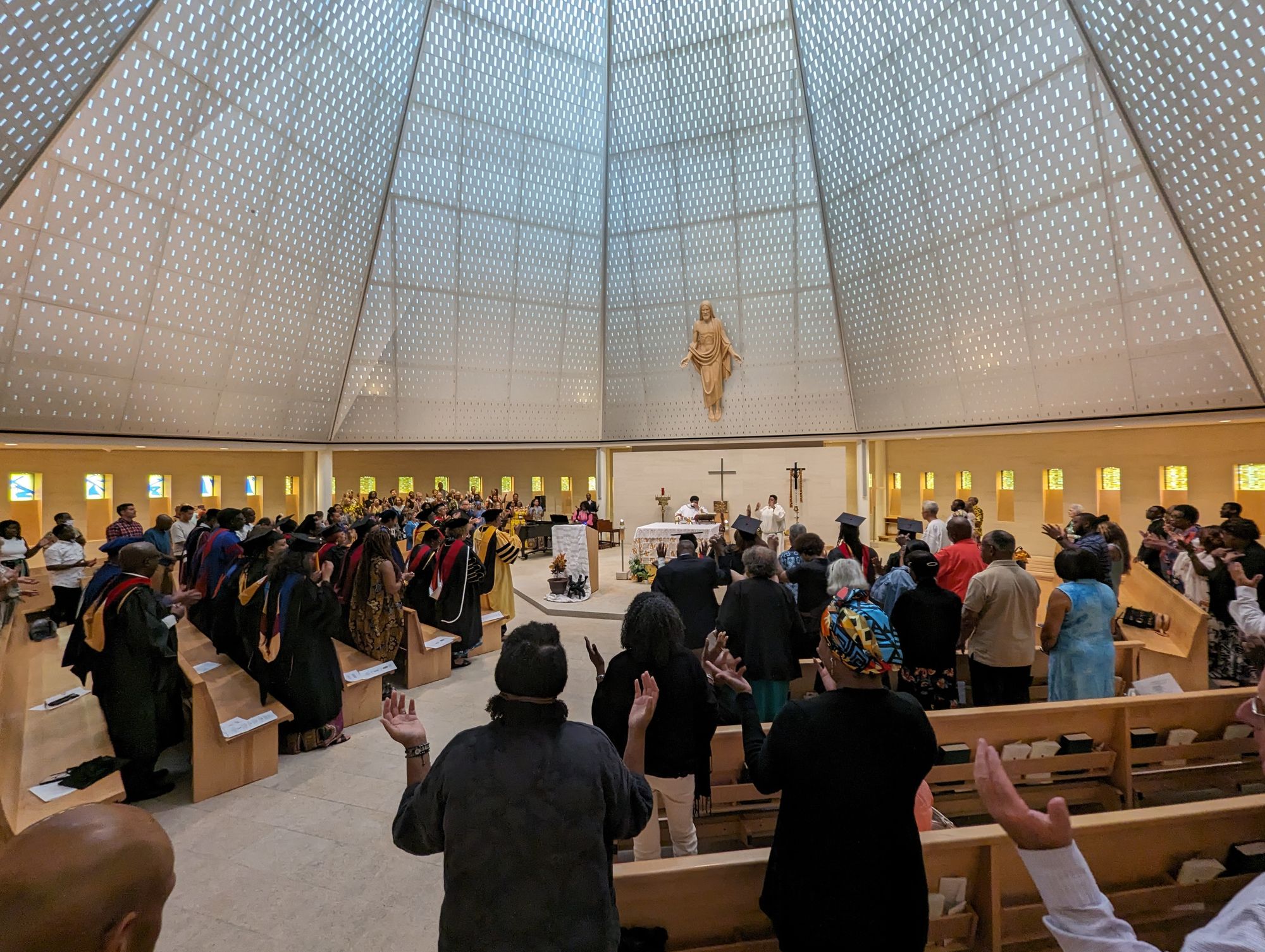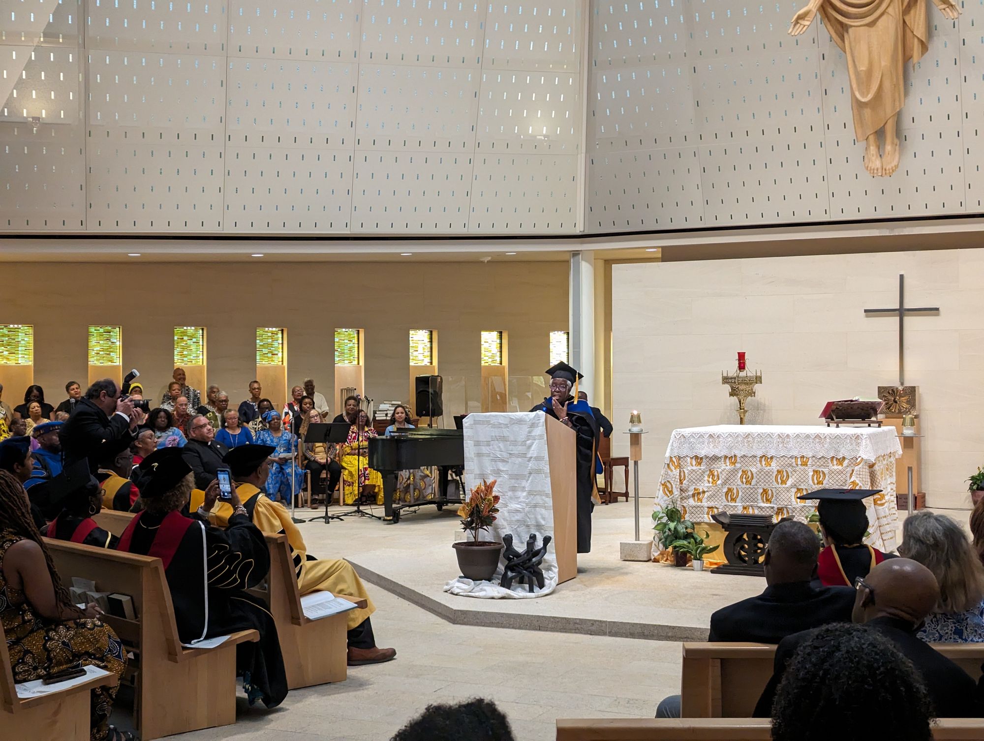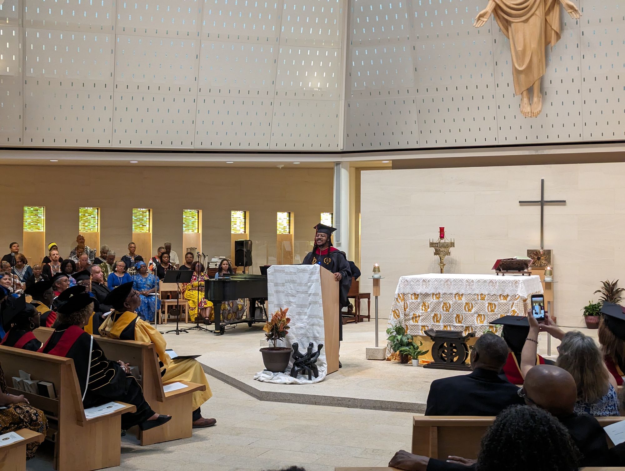 This year’s graduates hailed from around the country as well, including Princess McEvilley of Virginia, Aisha C. Young of Colorado, Connie L. Bowie McCalla from Pennsylvania, and Louisiana’s own Aubrey F. Osborn. A fifth graduate, Osborn’s fellow New Orleanian Derek Rankins Jr., delivered a powerful student address to the assembled chapel crowd, emphasizing IBCS’ commitment to inculturated theology and praxis.