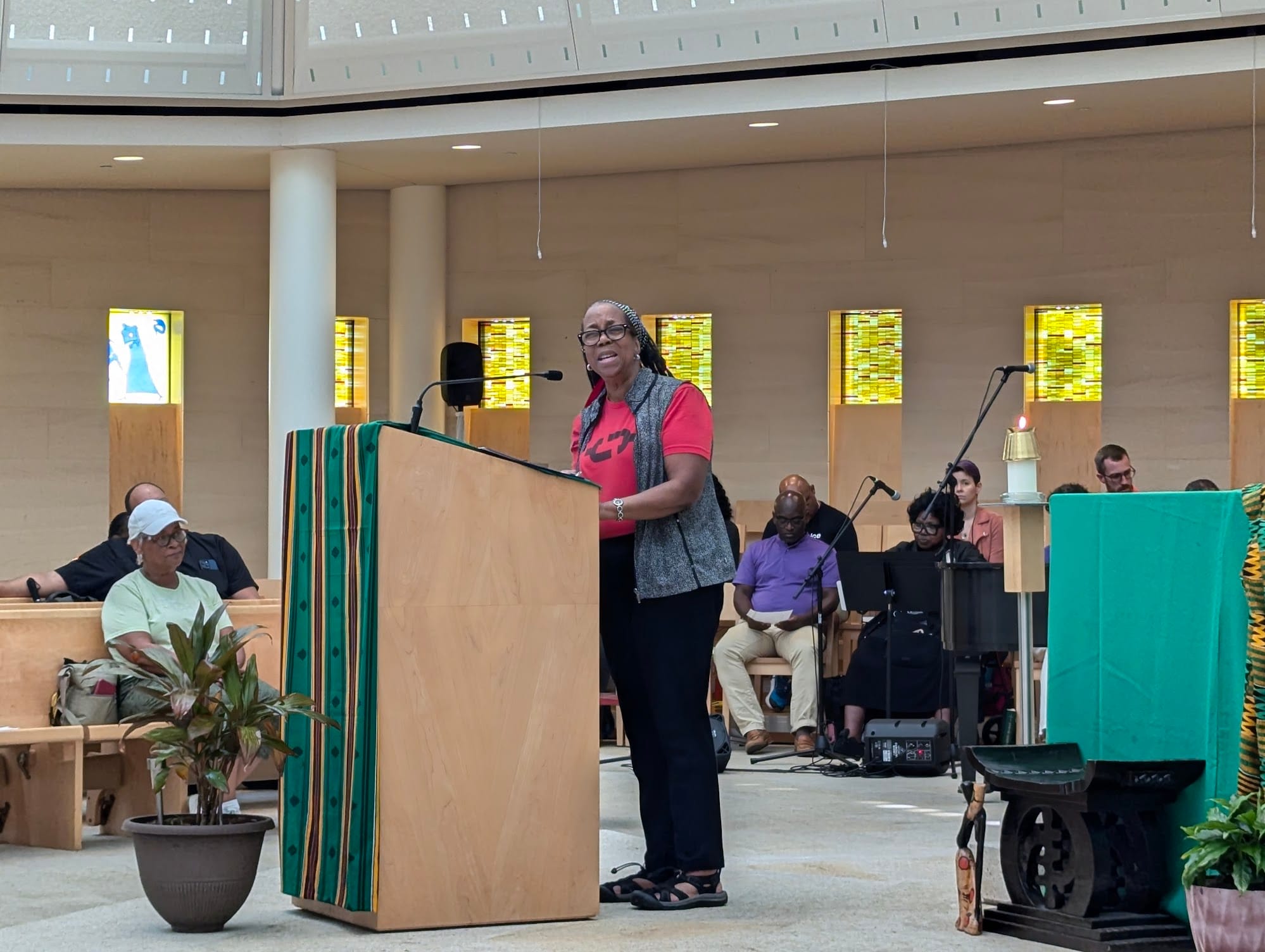 Harris interspersed her remarks with the old Black spiritual, “Oh Lord, I’m Hungry,” which intones the struggle of enslaved Black Americans who sang of Eucharistic communion with God despite their lashings and subjugation under White rule in a strange land.