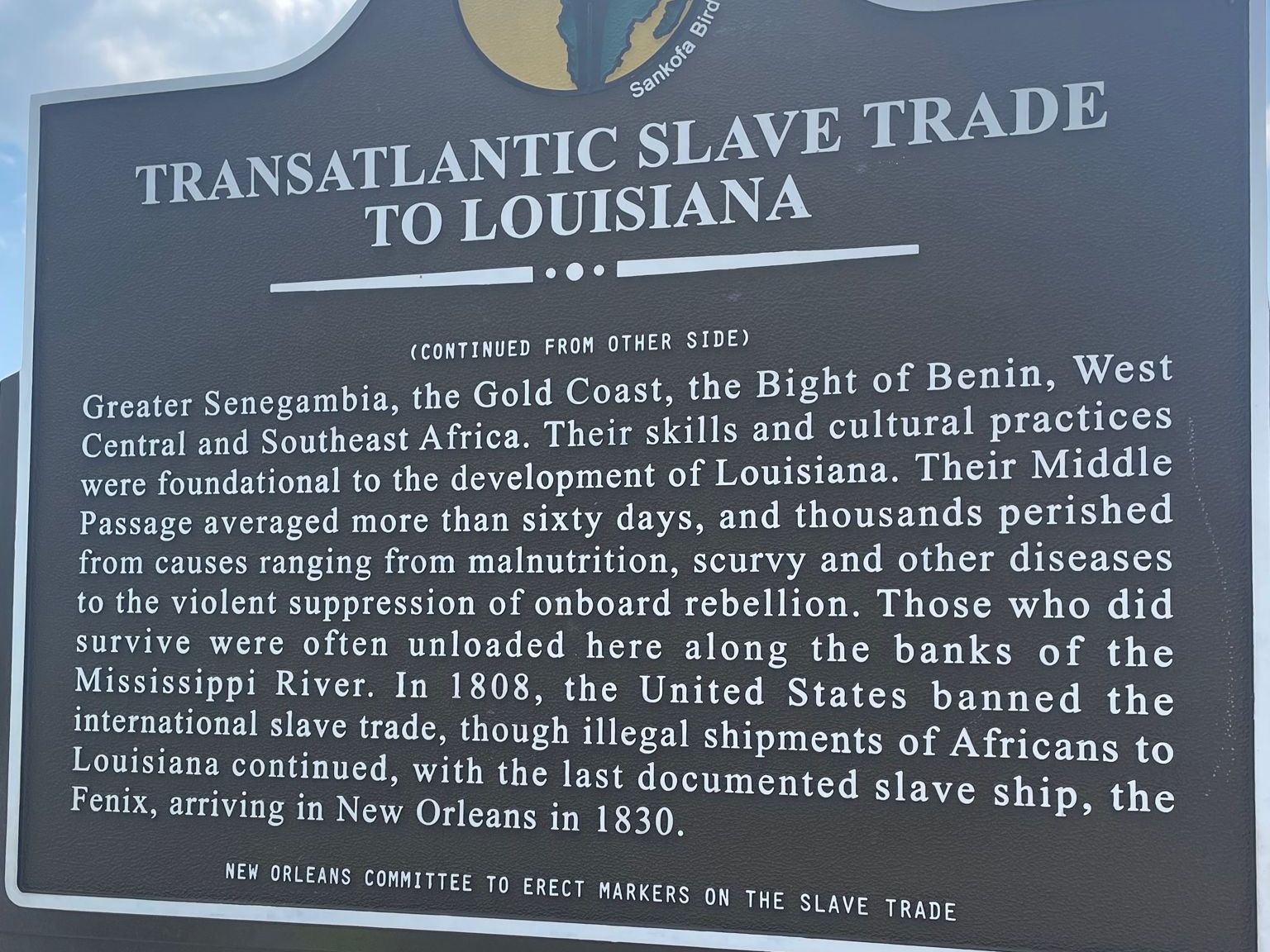 On this long and breathtaking journey that started from Congo Square in New Orleans—where the enslaved people would gather to pray and play on their free days, which were only on Sundays—down to the Mississippi River, where they had been unpacked from the slave ships that had been their homes for months, I felt this unredeemed anger because of the greedy and selfish desires of some European (White) folks that put my ancestors and yours in an inhumane and unkempt condition and environment.