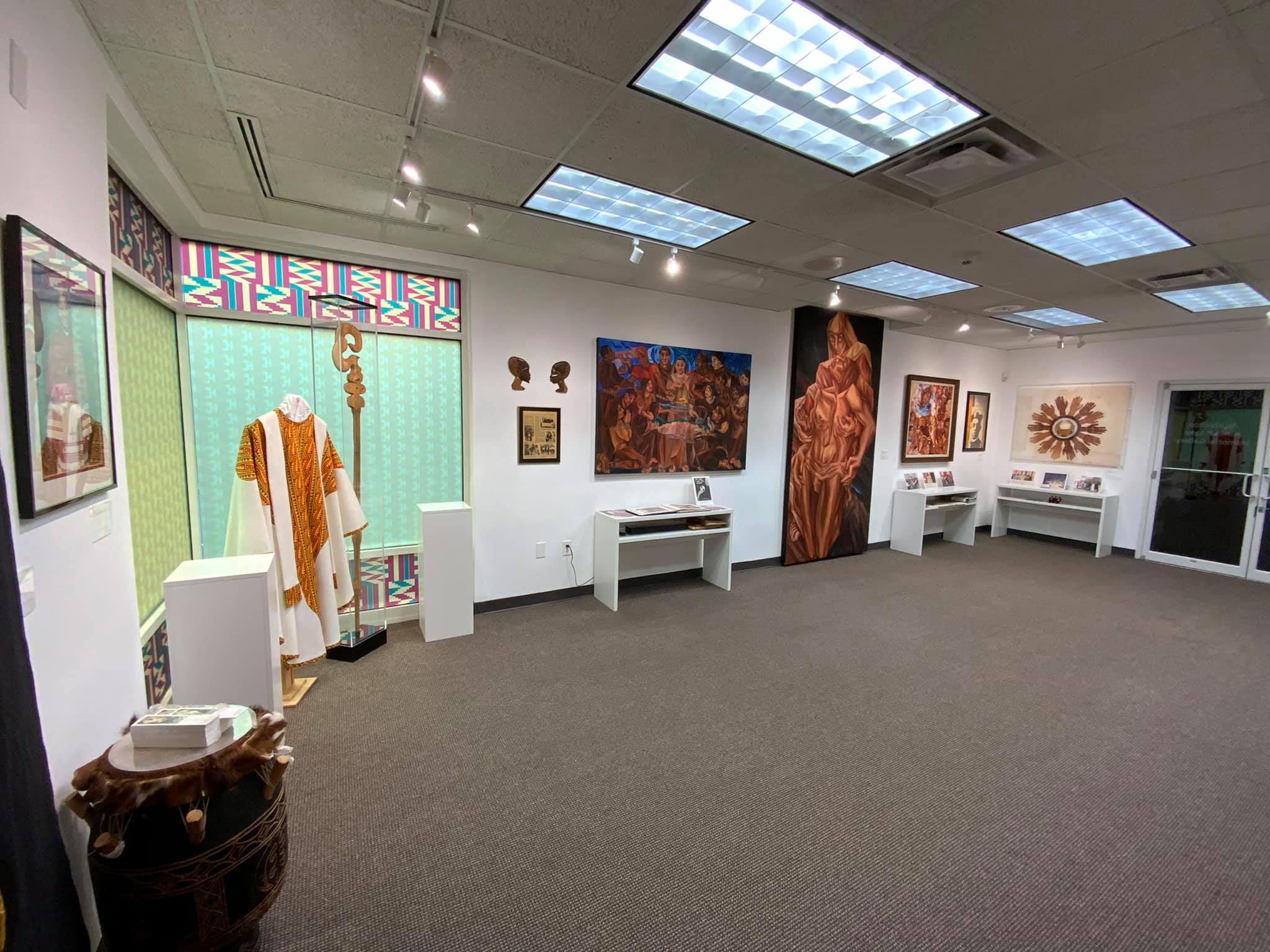 The memorial gallery includes art from the Afrocentric and US Black Catholic oeuvres, as well as artifacts from the life and ministry of the late Archbishop James Lyke, OFM of Atlanta—the famed Black theologian and liturgist who in 1991 became just the second African-American archbishop in history.
