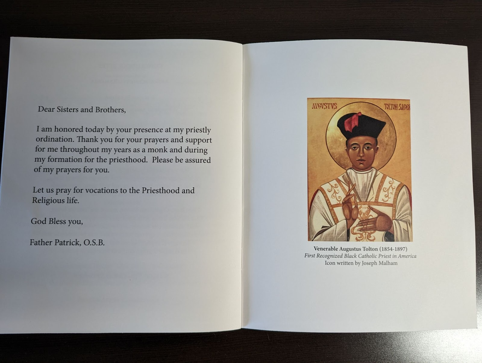 Tolton, of course, faced a life of challenges, ranging from slavery as a child to derision as a priest to glory as a venerated emblem of Black Catholic spirituality and ordained ministry. Fittingly, his visage graced the pages of the Mass program for Winbush’s own sacred moment.