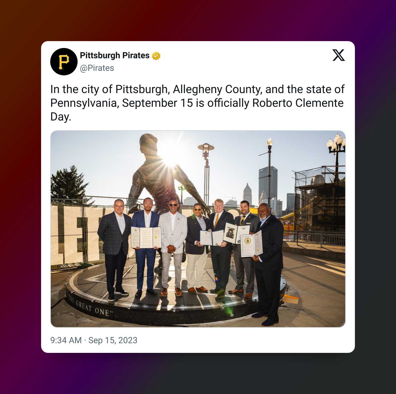 “While it is a Major League Baseball-wide celebration, it means so much more to us here in Pittsburgh and to the Pirates organization," said Pirates team president Travis Williams, during an event with the Clemente family outside the stadium on Friday morning at the Clemente statue.