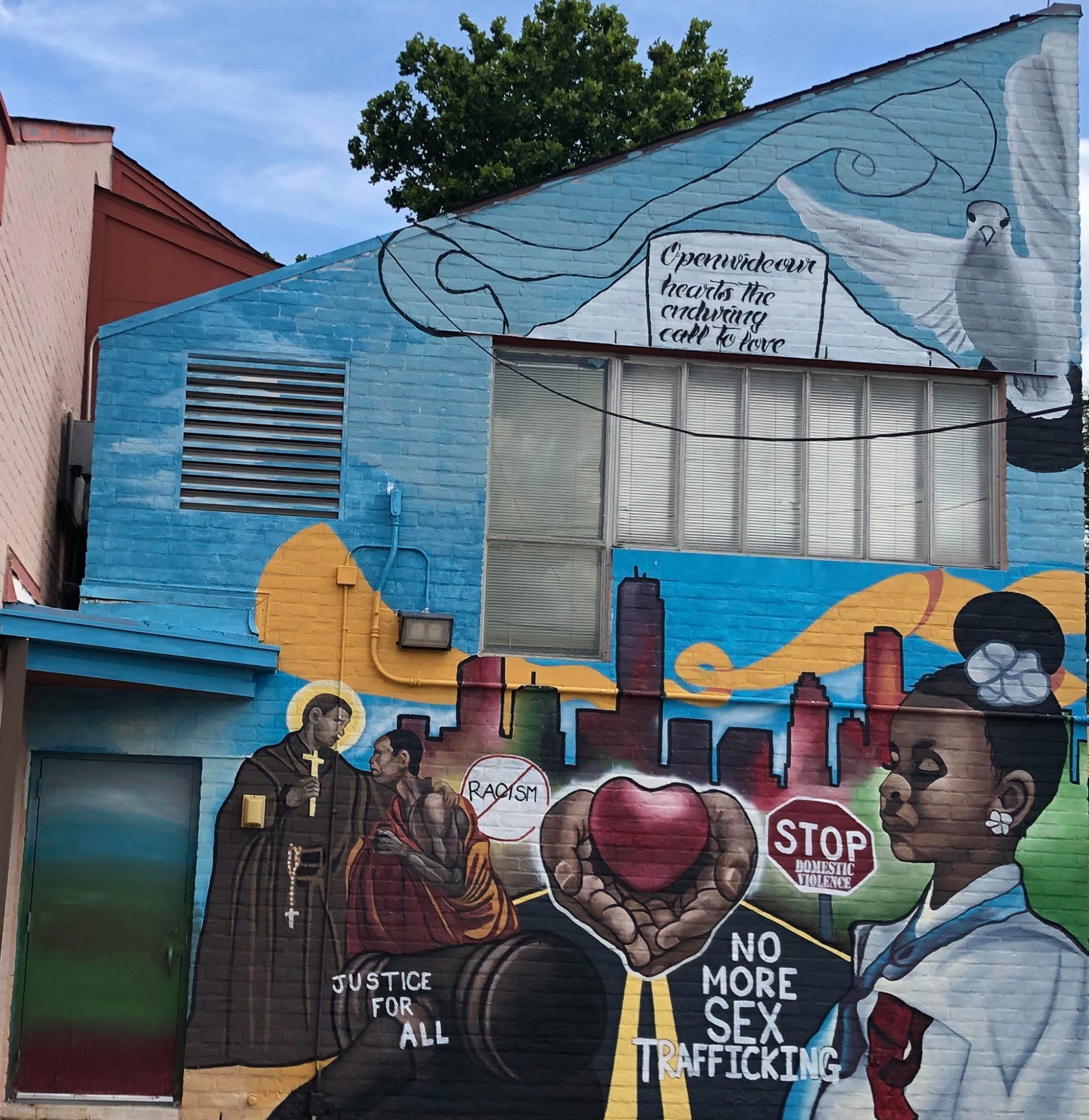 TSU is also one of the HBCU Newman Centers that operate out of their own facility. (Howard’s is scheduled to move into a newly acquired facility sometime next year.) Located in Houston’s Third Ward neighborhood, Barrow’s post is hard to miss with its larger-than-life outdoor mural of Black Catholic art focused on the Church’s social teaching. It was completed in 2019 and features a life-sized depiction of St Peter Claver.